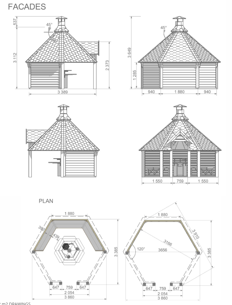 Mad fra bål og storhygge med familie og venner – hvad mere kan man bede om? I den 9,2 m2 store åbne grillhytte i træ kan du lave dine snobrød eller aftensmad i tørvejr. Hyg jer omkring varmen og nyd livet uden stress og jag sammen med de nærmeste. Du kan også bruge grillhytten, som et pusterum til at få lidt alene tid – samle tankerne, nyde roen og freden mens du lader op til en ny dag. Komplet grillhytte, som skærmer for det værste regn, blæst og fugt og samtidig fuldstændigt giver følelsen af at være udenfor.