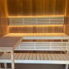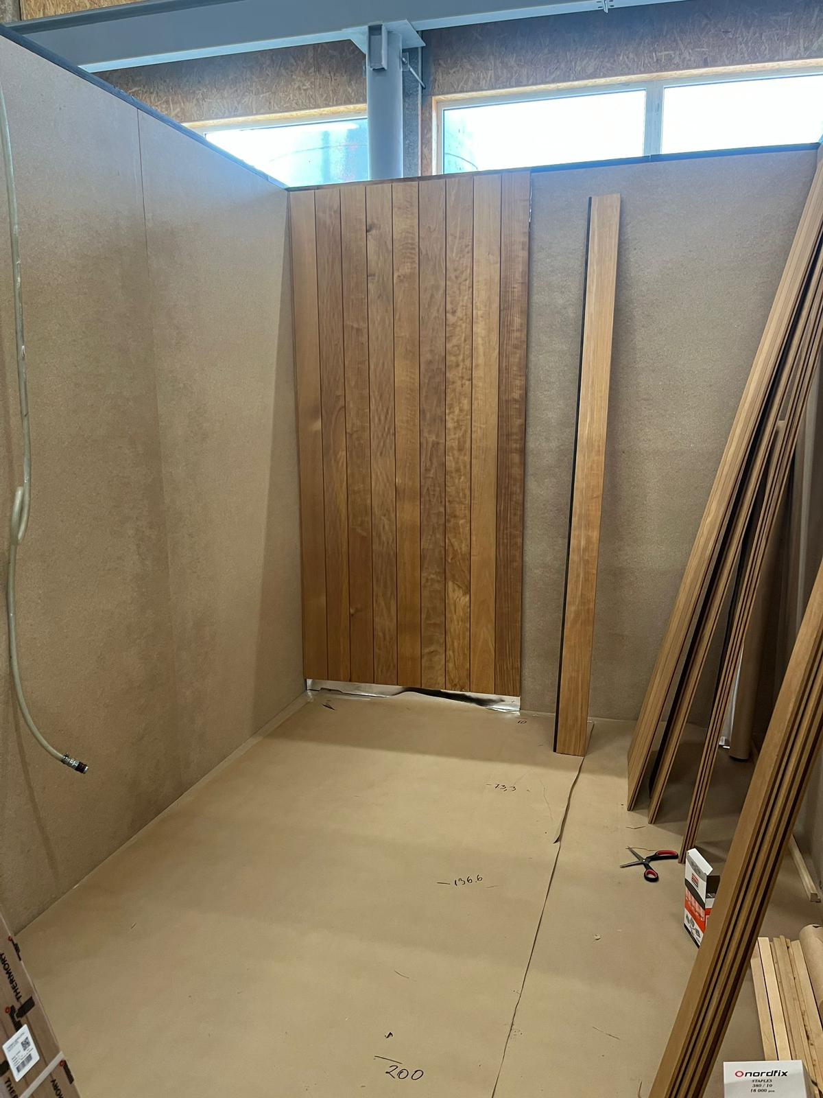 Som standard leveres saunaen med eksklusiv inderbeklædning i Thermowood, der giver et varmt, naturligt look og en behagelig atmosfære. Thermowood er kendt for sin formstabilitet og modstandsdygtighed over for fugt, hvilket sikrer, at saunaen bevarer sit smukke udtryk i mange år.