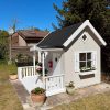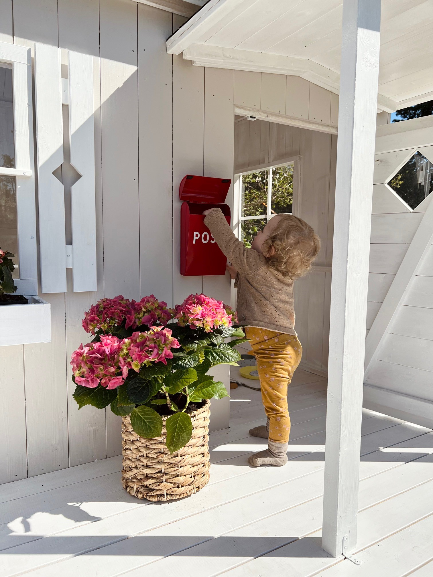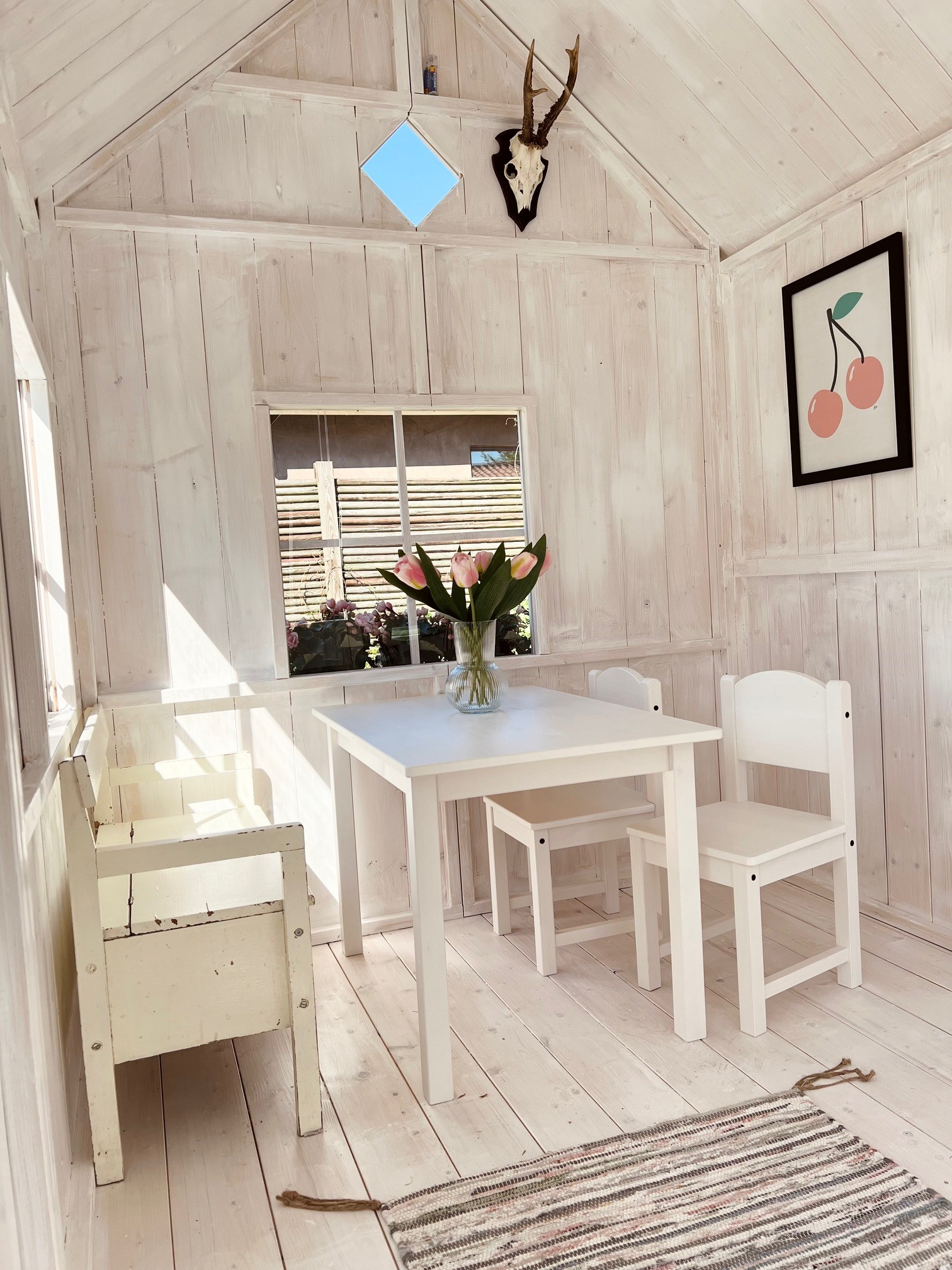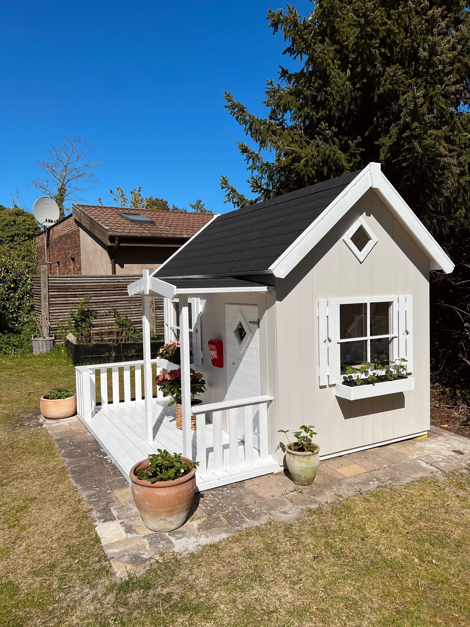 Det er vigtigt at behandle legehuset med træbeskyttelse både inde og ude så husets levetid forlænges.