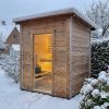 Sikkerheden er i top med en pålidelig beskyttelse til varmelegemet og en hærdet glasdør, der tilføjer et strejf af elegance, samtidig med at den sikrer holdbarhed og sikkerhed. Denne sauna er ikke blot en flugt fra hverdagen – den er et fristed, hvor du kan genoplade, reflektere og forny dit sind.